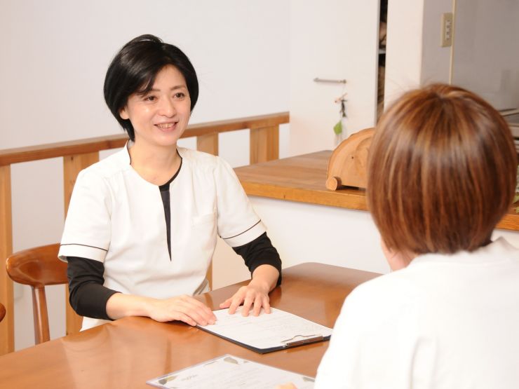 はじめての方は健康カードにご記入いただきお体のことお聞かせください。女性同士だからこそ話しやすいお悩みもあると思います。